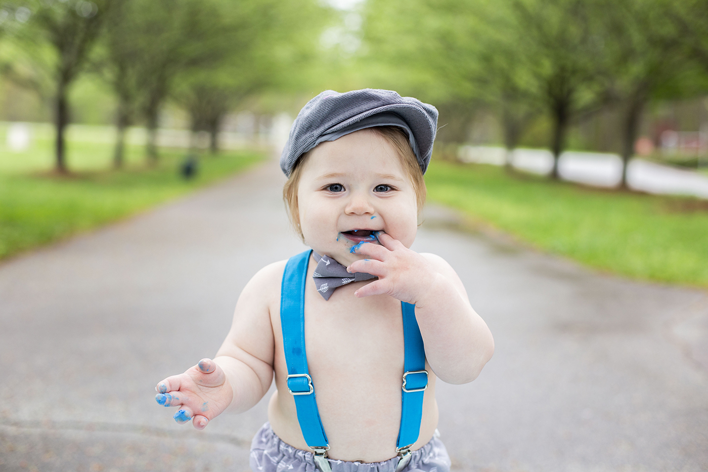 Outdoor cake smashes are adorable as well, sometimes it's a little harder to clean up, but we've had cute results from it. The weather has to be just right for it. Not too hot or cold. Typically my turn around time for returning photos is about a week, So if there's a party you need the photos for we can plan ahead or I can focus on birthday pics first and send those sooner.