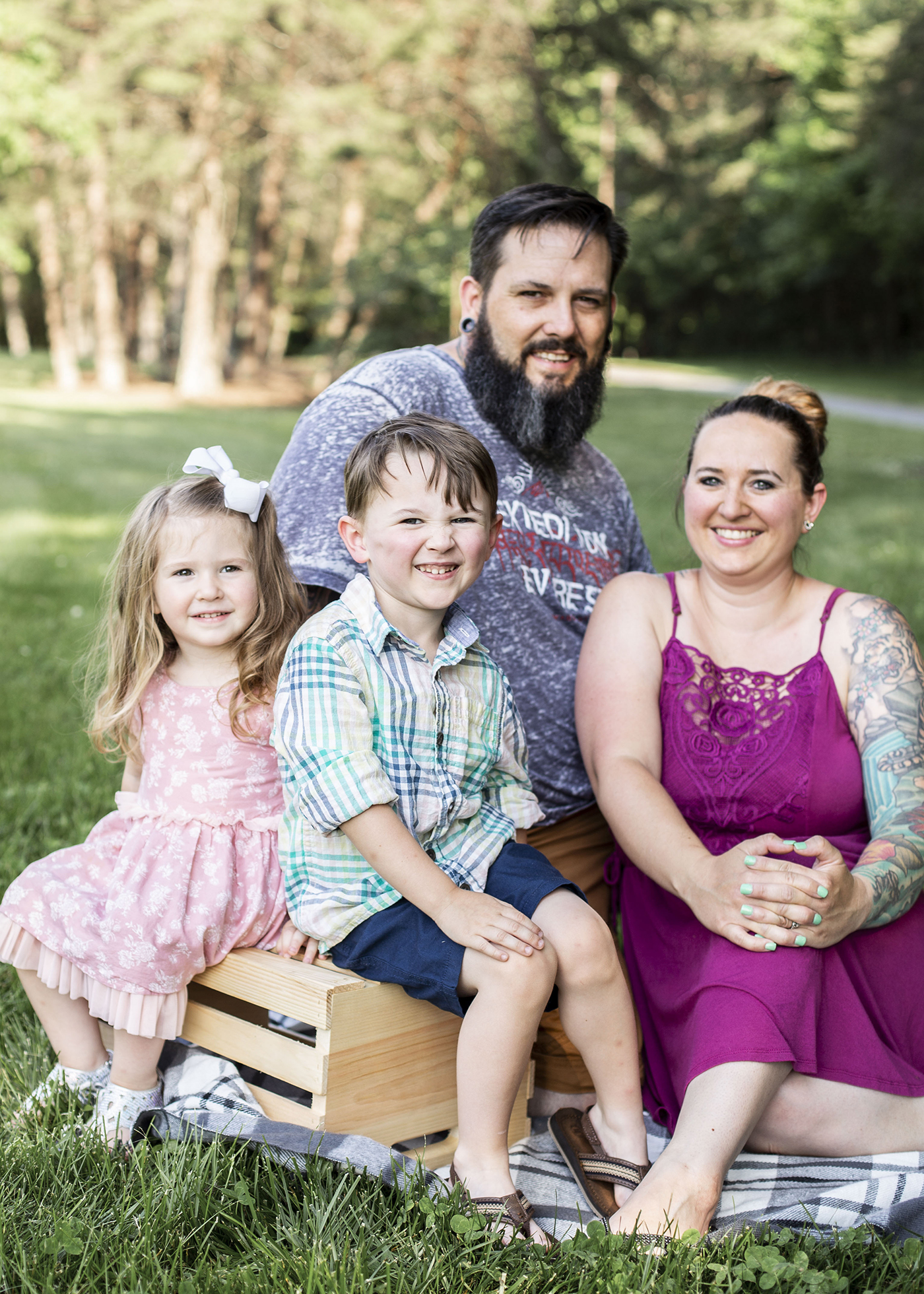 Normal family photo sessions are booked as an hour, this gives the kids times to warm up and so we can get a lot of different poses with out being on a time constraint. Some sessions are shot indoors due to weather or age of the kids. These indoor sessions work the best for families 5 subjects or less because of the amount of room we have on the backdrop. Normally needed is a 5x7 space for the backdrop. I'll place the lights in different spots in the area. For returning clients, to my discretion, we can shoot indoors in my finished basement. I have a large black backdrop that can fit much more than 5 subjects, in the near future, I hope to also get a white backdrop again as well- mine went missing while moving.
